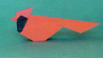 Even as a youngster, I was smitten with the Cardinal. I remember begging my parents for a plastic, Cardinal model kit that I could assemble and paint by myself. They did not buy it for me, but shortly afterwards, Santa Claus did. I tried for several years to design a fitting origami rendition of my favorite bird, but it was not until Richard asked me to determine the landmarks on my Mourning Dove, so he could successfully teach it to beginners at the Origamido Studio. In the process of trying to landmark the Dove, I discovered the potential to reshape the bird's head, and explored the opportunities to accomplish a color-change. I never did finish the job of land-marking the Mourning Dove. My vision for the origami cardinal years ago, was for a fully, three-dimensional bird, just like the plastic model that I had glued together and painted as a child. The resulting flat fold is quite a departure, yet just as satisfying to me, since it has a pleasing geometry and harmony that just gels. Like a wonderful poem that everybody can recite and understand, it has an honest quality in its simplicity, even though it is folded flat.