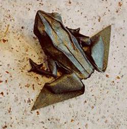 This design requires subtle sculpting along the back and eyes to make it appear particularly athletic -- lean and alert - ready to launch out of your slippery grasp with a single burst of power from hyper-strong hind legs. This model best represents why I coined the term "Origamido" many years ago. This model was one of the first designs that demanded a special type of paper - not just color and sparkle, but folding characteristics that allowed and preserved sculptural refinement. This refinement, made possible through producing a special design and a special paper, embodies the Japanese suffix "do", meaning "the pursuit", "the way" or "the life". This was also around the time I had been studying Tae Kwon Do, so I was mindful of directed, long-term dedication as a way to realize or achieve a specific goal.