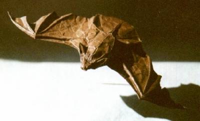 I was fortunate to work with these bats in college which gave me an opportunity to study their form, postures and behaviors. Even so, it took scores of hours of origami experimentation to approximate the form and proportions of this bat, Eptesicus fuscus. This work, more than any other, reminds me of what master Yoshizawa said, "Remember that the paper is the flesh, and the folds are the bones."