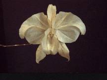 Cattleya Orchid Folded from a single 19-inch square of handmade crepe paper by Michael LaFosse. This example wat folded by Michael in 1990, and is in the collection of Richard L. Alexander. Photo by Richard L. Alexander copyright 1990 |