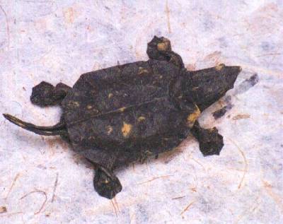 Origami Pond Turtle This turtle is folded from a single square of handmade paper by Michael LaFosse. Though not visible in this view, the plastron (belly plate) of this creature is included with this method. Designed by Michael G. LaFosse in 1975 Photo by Kellie vanRavestyn copyright 2000 |