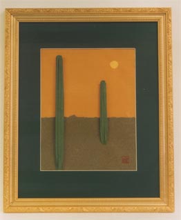 Commission us to produce original origami sculptures from handmade paper of select plant fiber blends and colorfast pigments. We also have several fine art works available on display in our studio. Some are on pedestals, some in show cases, some beautifully mounted and framed.